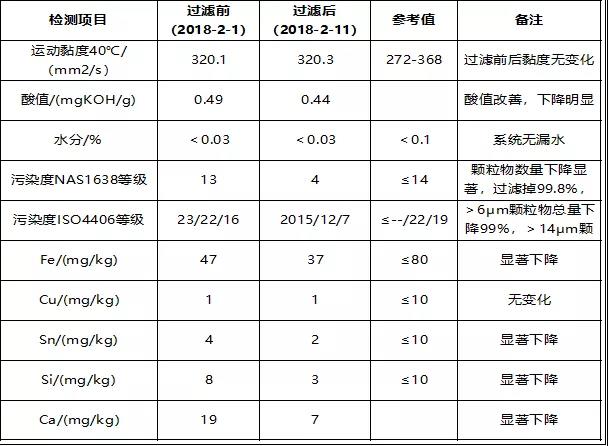 冀東水泥股份有限公司(以下簡稱“冀東水泥”)一直注重設(shè)備潤滑的管理工作,在設(shè)備潤滑管理、保護(hù)環(huán)境、成本控制等方面均嚴(yán)格要求,但這些措施還不能從根本上解決問題。為此,冀東水泥采用了西西延森過濾器(天津)有限公司(以下簡稱“西西延森”)精密過濾技術(shù),對(duì)廠區(qū)內(nèi)原使用的齒輪油、液壓油、汽輪機(jī)油進(jìn)行過濾處理。具體處理效果如下: