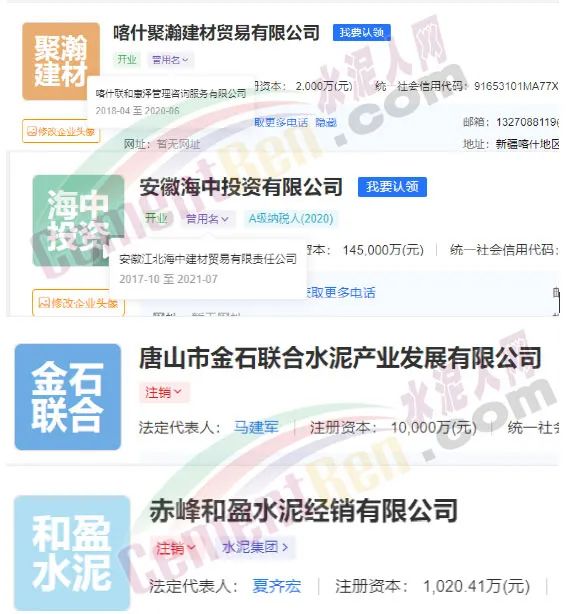 據(jù)愛(ài)企查數(shù)據(jù)顯示,截止目前上述聯(lián)合水泥公司多數(shù)已經(jīng)進(jìn)行了變更。涉及企業(yè)名稱、經(jīng)營(yíng)范圍變更、人員變更、出資比例變更、市場(chǎng)主體類型變更以及股權(quán)變更等多個(gè)項(xiàng)目。其中,喀什聯(lián)和惠澤管理咨詢服務(wù)有限公司、安徽江北海中建材貿(mào)易有限責(zé)任公司兩家企業(yè)已更名;唐山金石聯(lián)合水泥產(chǎn)業(yè)發(fā)展有限公司、赤峰和盈水泥經(jīng)銷有限公司已為“注銷”狀態(tài)。
