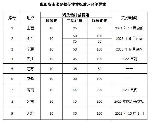 同期,國務(wù)院印發(fā)《“十四五”節(jié)能減排綜合工作方案》明確要求加快推進水泥等行業(yè)的超低排放改造,到2025年,全面實現(xiàn)大氣污染防治重點區(qū)域燃煤鍋爐超低排放。各地政府也相繼通過出臺嚴苛的地方標準、支持及處罰政策等措施,加快推進水泥行業(yè)超低排放改造工作。