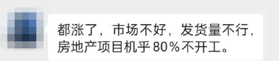 長(zhǎng)三角一家中轉(zhuǎn)庫(kù)負(fù)責(zé)人對(duì)水泥人網(wǎng)表示,“都漲了,市場(chǎng)不好,發(fā)貨量不行,房地產(chǎn)項(xiàng)目幾乎80%不開(kāi)工。”