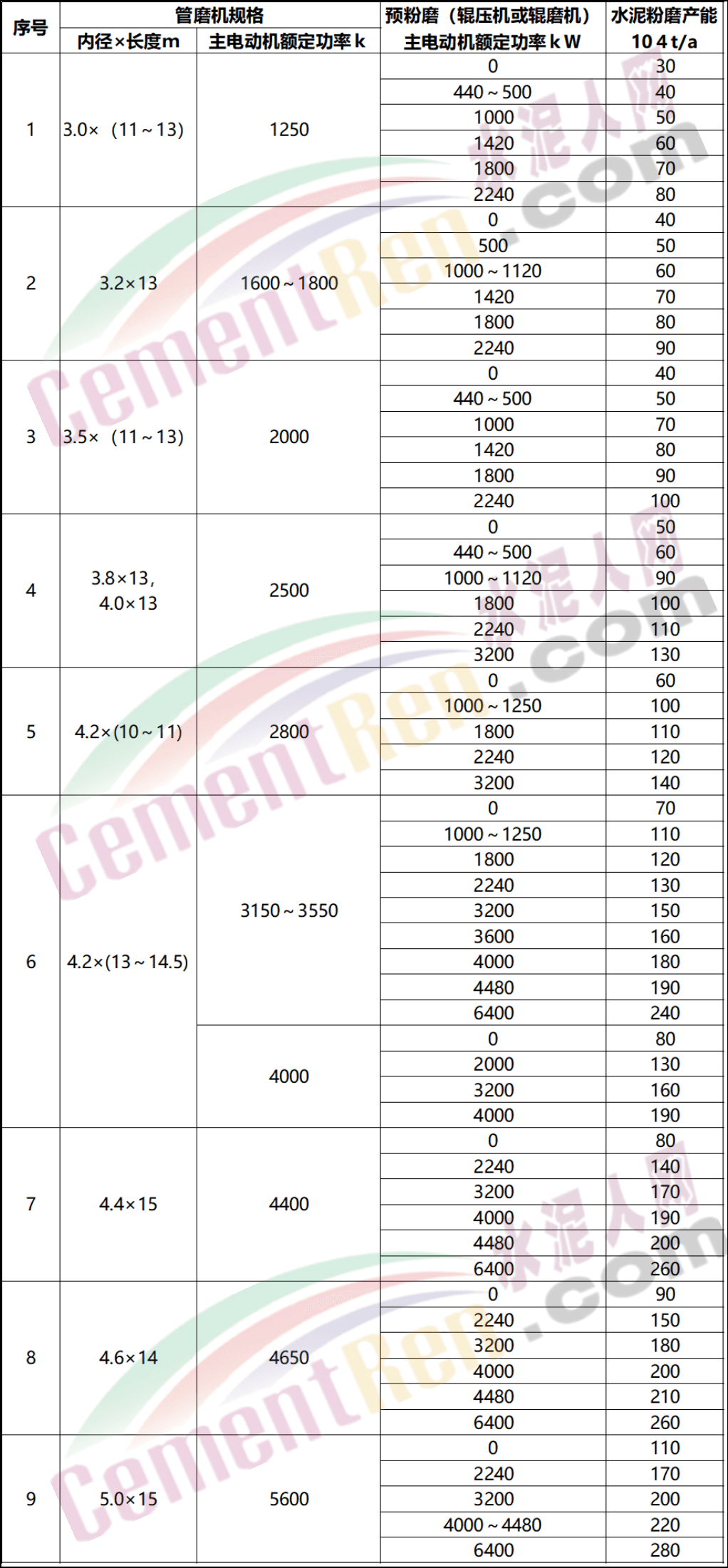 水泥粉磨產(chǎn)能核定表(管磨機(jī)系統(tǒng))