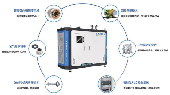 此外,據(jù)雷茨相關(guān)技術(shù)人員介紹,雷茨空氣懸浮風(fēng)機(jī)相比傳統(tǒng)鼓風(fēng)機(jī)/壓縮機(jī),效率提高25%以上,省電30%以上,1年左右就能收回成本。具有以下特點(diǎn):
