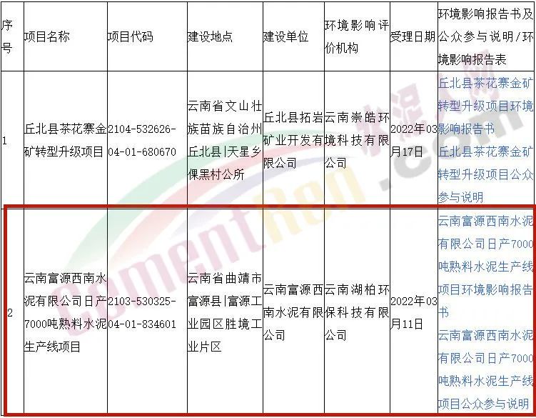 同日,云南省生態(tài)環(huán)境廳發(fā)布《關(guān)于2022年03月17日建設(shè)項目環(huán)境影響評價文件受理情況的公示》稱,