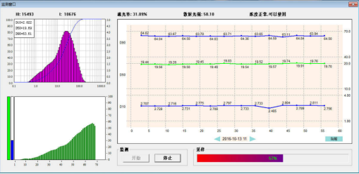 2. 實(shí)時(shí)控制功能:本系統(tǒng)除進(jìn)行監(jiān)測(cè)粒度外還具有控制功能??刂频姆绞绞歉鶕?jù)監(jiān)測(cè)的顆粒級(jí)配數(shù)據(jù)傳輸?shù)娇刂浦行模ㄟ^(guò)DCS、OPC或4-20mA信號(hào)等方式,控制磨機(jī)、分級(jí)機(jī)參數(shù),實(shí)現(xiàn)對(duì)設(shè)備閉環(huán)控制,從而達(dá)到了提質(zhì)增效、節(jié)能降耗的目的。