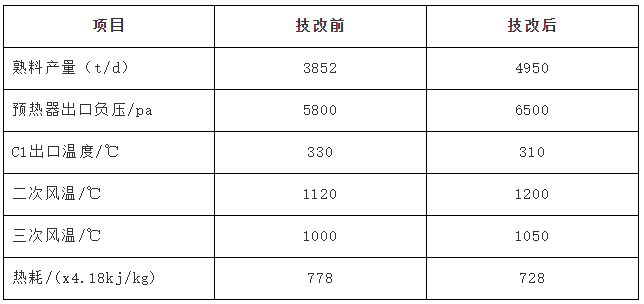 表5 燒成系統(tǒng)改造前后參數(shù)對比
