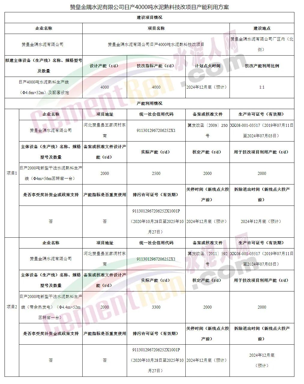 ? 3月23日,河北省工信廳發(fā)布了《贊皇金隅水泥有限公司日產(chǎn)4000噸水泥熟料技改項(xiàng)目產(chǎn)能利用方案公示》。公示內(nèi)容顯示,贊皇金隅水泥將退出旗下兩條熟料生產(chǎn)線,用于新建一條4000t/d水泥熟料生產(chǎn)線,新建生產(chǎn)線將于2024年底前點(diǎn)火投產(chǎn)。本次技改產(chǎn)能利用比例為1:1。