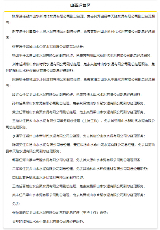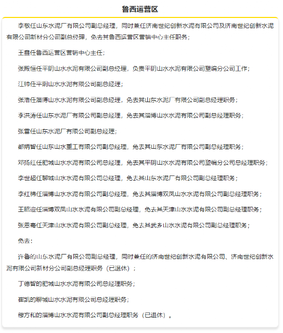 1月中旬,山東山水集團(tuán)有限公司發(fā)布人事任命,對旗下多個運營區(qū)進(jìn)行人事調(diào)整,涉及魯西、魯東、魯南、東北和山西等多個區(qū)域。