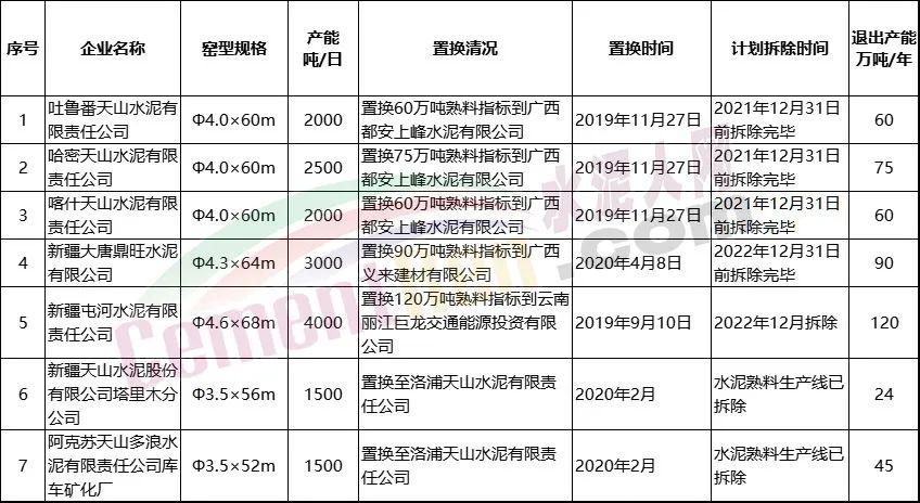 新疆7條熟料生產(chǎn)線已拆除、擬拆除熟料產(chǎn)能合計474萬噸/年