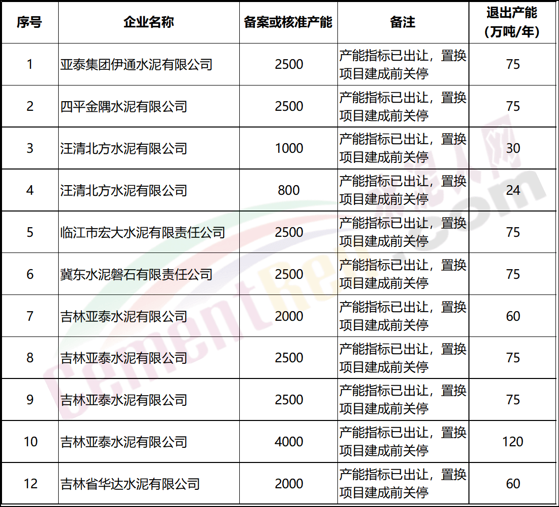 吉林省擬關停退出12條熟料生產(chǎn)線,退出產(chǎn)能合計744萬噸/年
