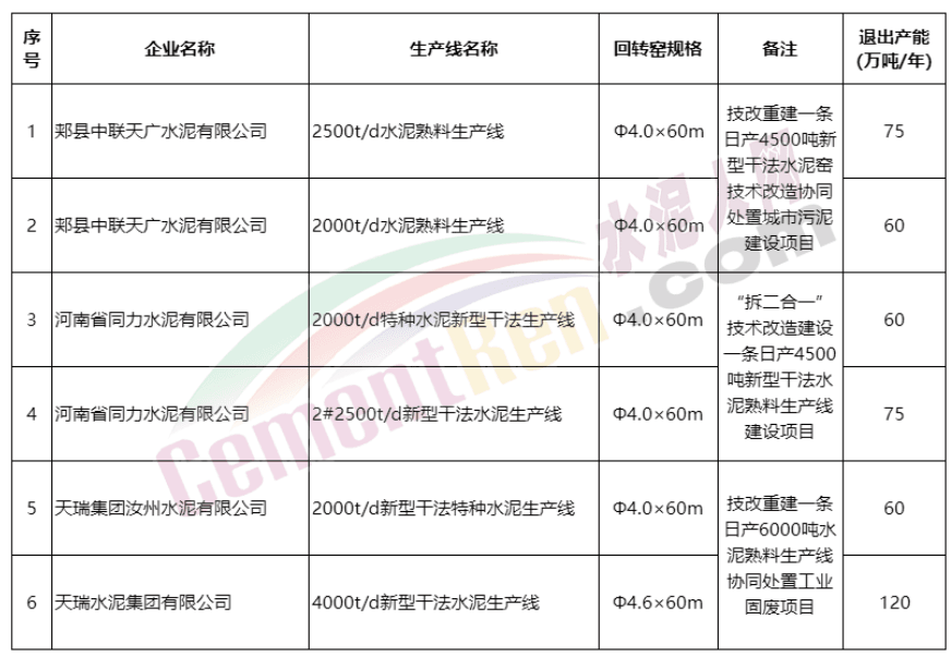 河南擬退出6條熟料生產(chǎn)線合計450萬噸產(chǎn)能用于置換新建3條生產(chǎn)線