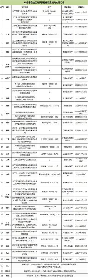 31省市自治區(qū)出臺政策:關(guān)于投標(biāo)保證金!