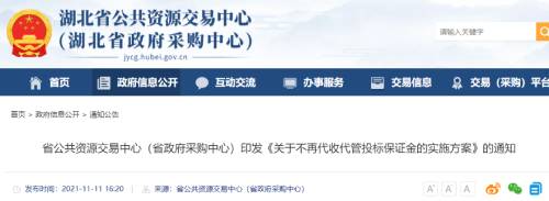 近日,湖北省公共資源交易中心印發(fā)《關(guān)于不再代收代管投標(biāo)保證金的實施方案》,其中提到省交易(采購)中心自2021年12月1日起不再代收代管投標(biāo)保證金。省交易(采購)中心將對招標(biāo)文件示范文本進(jìn)行修訂,2021年12月1日上線運行后,使用修訂后的招標(biāo)文件示范文本開展招投標(biāo)活動的,省交易(采購)中心不再代收代管投標(biāo)保證金。再明確:政府采購工程招投標(biāo)項目免收投標(biāo)保證金;依法必須招標(biāo)的工程建設(shè)項目投標(biāo)保證金不得超過合同估算價的1%,最高不超過50萬元。2021年3月,湖北省公共資源交易中心印發(fā)通知,要求停止收取政采工程投標(biāo)保證金、履約保證金。在工程建設(shè)領(lǐng)域,推行以保險、保函替代現(xiàn)金保證金;政采招標(biāo)免收投標(biāo)保證金、履約保證金。