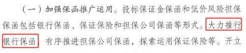 一是在各級政府投資項目或國有投資的工程、技術(shù)、服務(wù)項目中大力推行保函替代現(xiàn)金形式保證金,相關(guān)單位在招標(biāo)文件中明確投標(biāo)企業(yè)可以保函、擔(dān)保、保險等方式代替各類保證金。