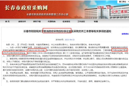 長春:自2021年7月1日起,取消政府采購?fù)稑?biāo)保證金。
