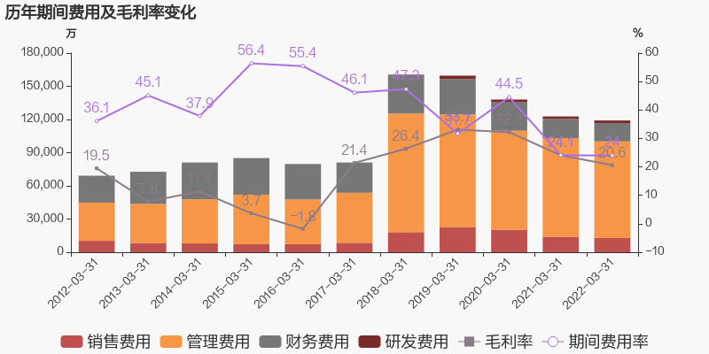 公司2022一季度營(yíng)業(yè)成本39.5億,同比上升2%,營(yíng)業(yè)收入同比下降2.5%,毛利率下降3.5%。期間費(fèi)用率為24%,同去年相比變化不大。經(jīng)營(yíng)性現(xiàn)金流由4.2億下降至-7億,同比下降267.3%。
