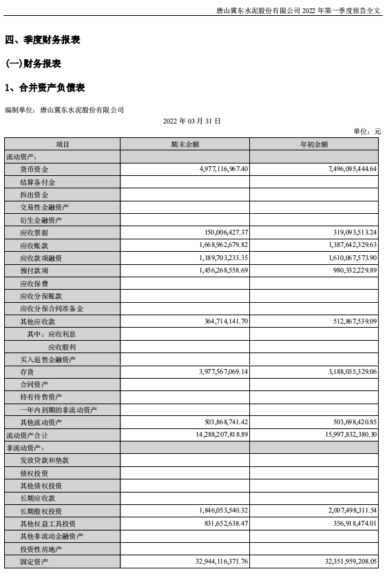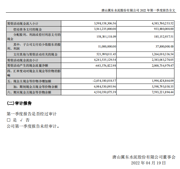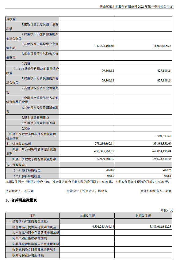 冀東水泥:2022年一季度歸母凈利潤(rùn)為虧損2.3億元
