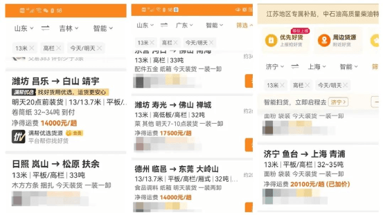 據(jù)卡友反饋平常由濟(jì)寧至上海地區(qū)的運(yùn)價(jià)約為7000元左右,而最近我們看到由濟(jì)寧至上海的凈得運(yùn)費(fèi)有的已經(jīng)來到了20100元。并且這個(gè)運(yùn)價(jià)多半是找不到車的,因?yàn)檫@個(gè)價(jià)格已經(jīng)在平臺(tái)上掛了幾天了,還未有人接單,如果想要訂車價(jià)格還會(huì)有一定上浮空間。