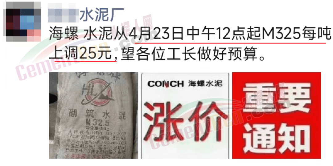 同日,陜西關(guān)中地區(qū)海螺水泥通知從4月23日中午12點(diǎn)起M325砌筑水泥上調(diào)25元/噸。