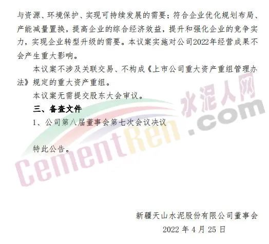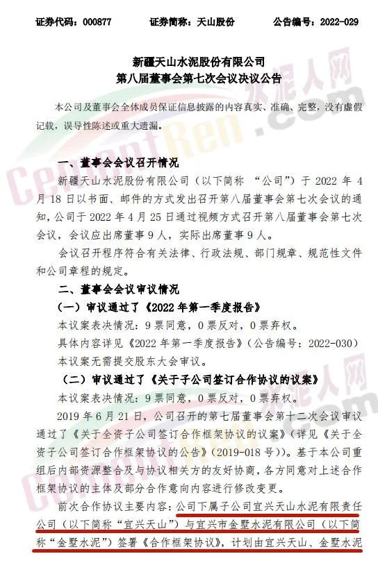 4月25日天山股份發(fā)布第八屆董事會第七次會議決議公告,審議通過了《關于子公司簽訂合作協(xié)議的議案》。