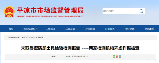 甘肅省平?jīng)鍪惺袌霰O(jiān)管局消息,兩家檢測機構未取得資質(zhì)卻出具檢驗檢測報告被查。