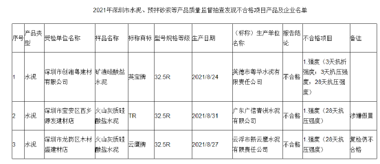 3批水泥質(zhì)量不合格