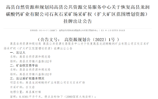 今年以來自然資源部官網(wǎng)公布的石灰石礦采礦權出讓公告共6條,建筑用砂石礦等相關信息200多條。
