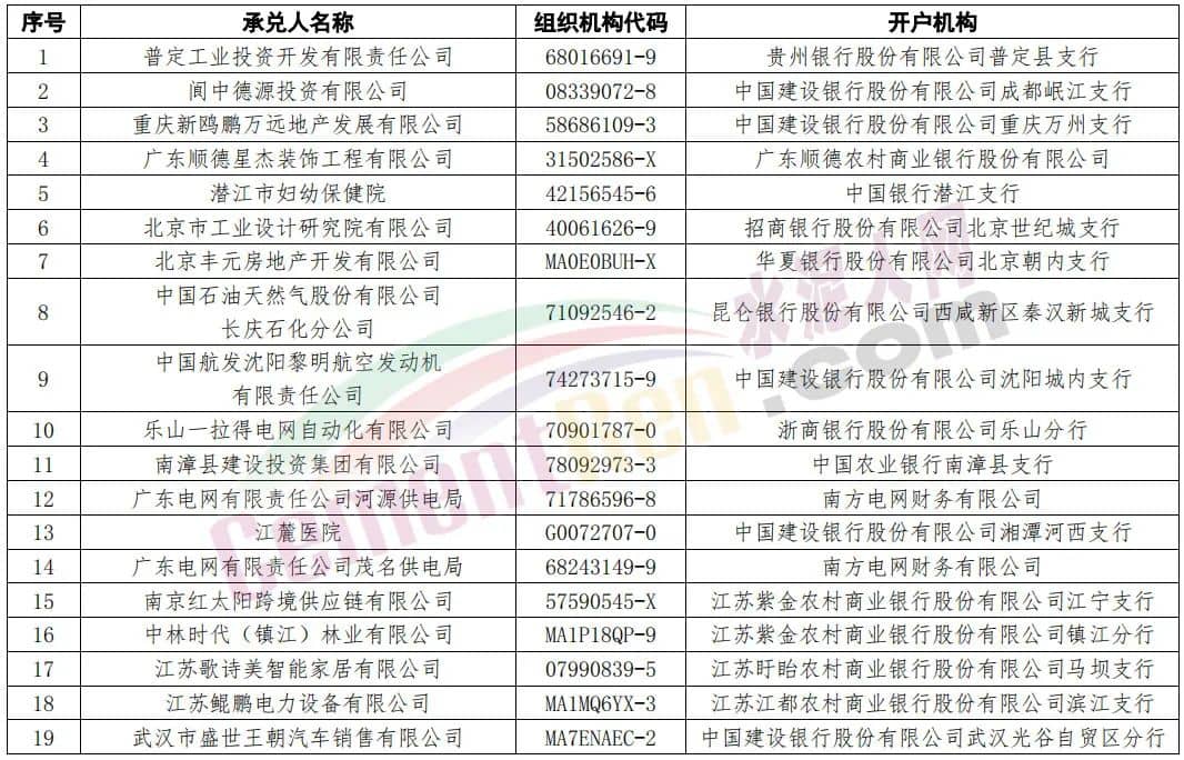 19家企業(yè)承兌人信息與工商登記信息不一致,或存在假冒商票問(wèn)題