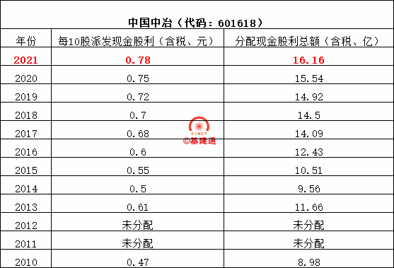中國(guó)中冶擬以總股本20723619170股為基數(shù),按每10股派發(fā)現(xiàn)金紅利人民幣0.78元(含稅),共計(jì)現(xiàn)金分紅人民幣16.16億元。該方案擬定的現(xiàn)金分紅總額占2021年度中國(guó)中冶合并報(bào)表歸屬于上市公司股東凈利潤(rùn)的19.30%。