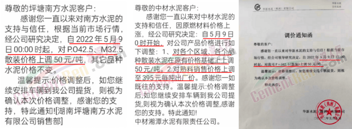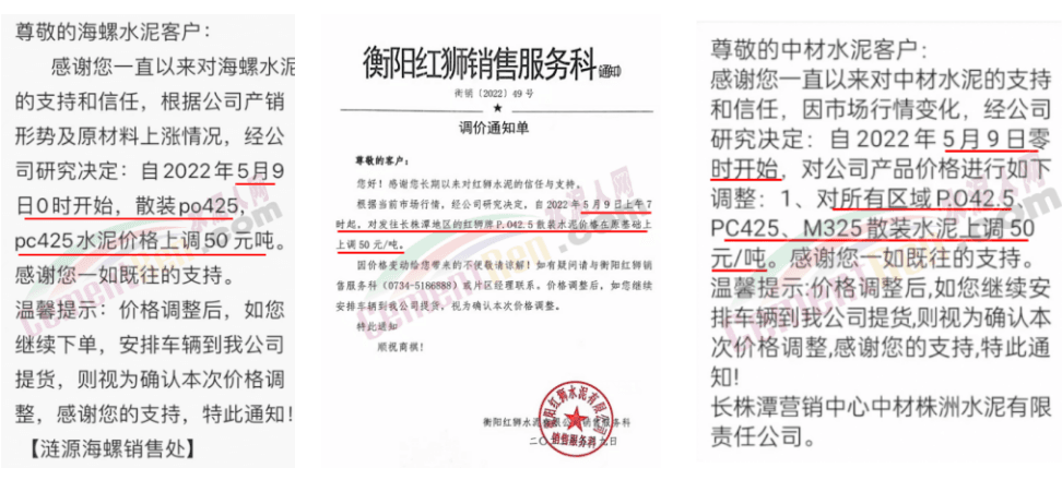 湖南區(qū)域包括海螺、紅獅、南方等主要品牌企業(yè)通知上調(diào)水泥價(jià)格50元/噸。