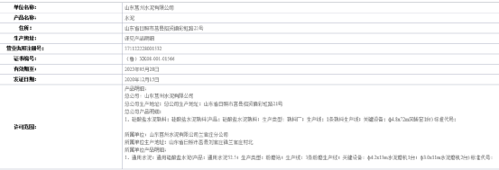山東省市場監(jiān)督管理局生產(chǎn)許可證數(shù)據(jù)顯示,山東莒州水泥有限公司生產(chǎn)許可證編號(魯)XK08-001-01566,生產(chǎn)許可證有效期至2023年5月28日 。生產(chǎn)許可證產(chǎn)品明細顯示企業(yè)擁有一條5000t/d熟料生產(chǎn)線和3條粉磨生產(chǎn)線。