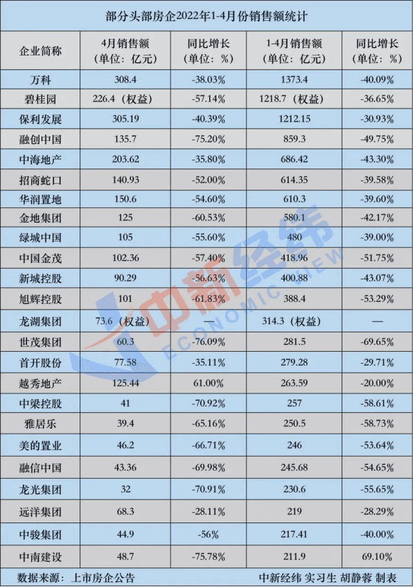 據(jù)公開數(shù)據(jù),進(jìn)入5月份,多家上市房企相繼公布2022年1-4月份的銷售業(yè)績(jī)。據(jù)不完全統(tǒng)計(jì),截至5月13日,已公布銷售業(yè)績(jī)的頭部房企,銷售額幾乎全部呈現(xiàn)負(fù)增長(zhǎng),其中,至少有18家房企4月份的銷售額出現(xiàn)腰斬,同比下降超過(guò)50%。