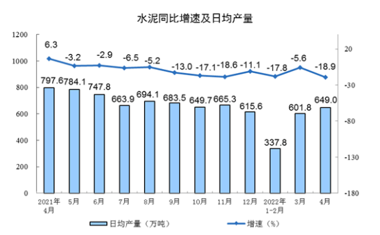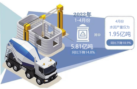 地產(chǎn)是水泥的下游行業(yè),地產(chǎn)行業(yè)持續(xù)低迷,水泥行業(yè)也不樂觀。據(jù)國(guó)家統(tǒng)計(jì)局最新數(shù)據(jù),2022年1-4月全國(guó)累計(jì)水泥產(chǎn)量5.81億噸,同比下降14.8%;4月全國(guó)單月水泥產(chǎn)量1.95億噸,同比下降18.9%。