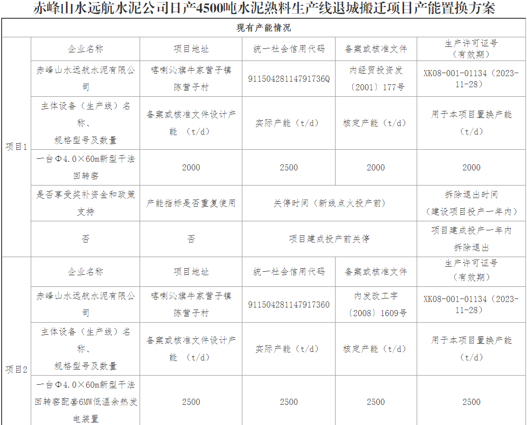 據(jù)了解,2021年3月內(nèi)蒙古工信廳發(fā)布關(guān)于赤峰山水遠(yuǎn)航水泥有限公司日產(chǎn)4500噸水泥熟料生產(chǎn)線退城搬遷項(xiàng)目產(chǎn)能置換方案的公示,內(nèi)容顯示,赤峰山水遠(yuǎn)航水泥有限公司擬整合現(xiàn)有1條日產(chǎn)2500噸干法窯水泥生產(chǎn)線、1條日產(chǎn)2000噸干法窯水泥生產(chǎn)線,等量置換在喀喇沁旗十家滿族鄉(xiāng)石灰窯村建設(shè)1條日產(chǎn)4500噸水泥熟料生產(chǎn)線。項(xiàng)目計(jì)劃于2023年7月點(diǎn)火投產(chǎn)。