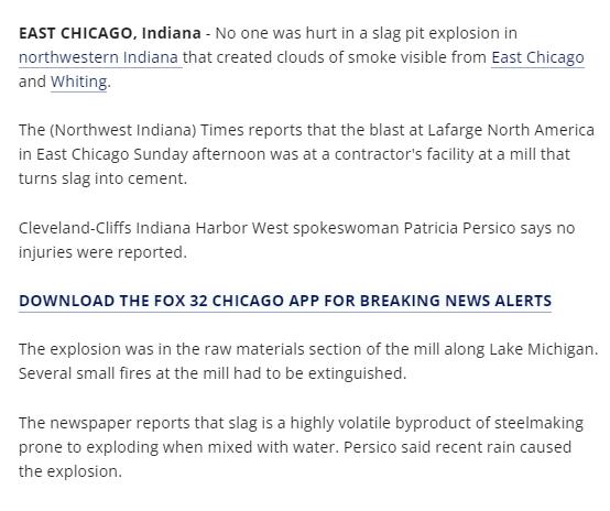 爐渣是煉鋼的一種高度揮發(fā)性的副產(chǎn)品,與水混合時(shí)容易爆炸。據(jù)Persico稱,可能是最近的降雨導(dǎo)致了這場(chǎng)爆炸。