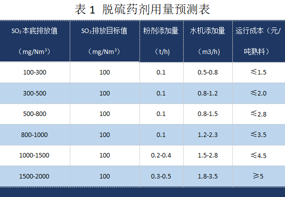 基于現(xiàn)場實際情況,多方面因素考慮,最終采用高效復(fù)合脫硫系統(tǒng)。該方案具有效果顯著、自動化控制,計量精確等優(yōu)點。同時,考慮后期排堿需要,可以自行定期外排高硫高堿窯灰。