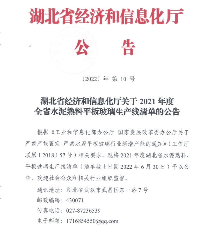 日前,湖北省經(jīng)信廳發(fā)布《關(guān)于2021年度全省水泥熟料平板玻璃生產(chǎn)線清單的公告》。公告附件中所列為截止日期2022年6月30日湖北省水泥熟料、平板玻璃生產(chǎn)線清單。 水泥熟料生產(chǎn)線清單共55條熟料生產(chǎn)線,合計產(chǎn)能達6220.02萬噸/年。