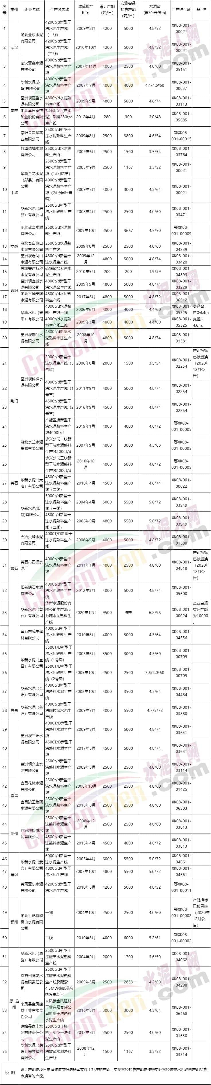 湖北55條熟料線合計產(chǎn)能超6000萬噸/年!3條已公告置換!