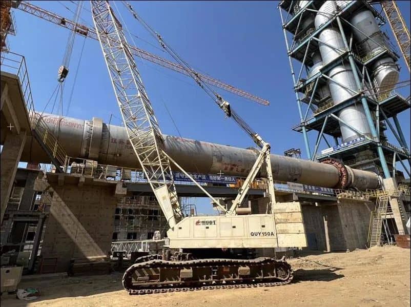 項(xiàng)目部為了確?;剞D(zhuǎn)窯吊裝作業(yè)安全順利進(jìn)行,克服了人員、機(jī)械設(shè)備進(jìn)場(chǎng)困難,認(rèn)真編制、反復(fù)核驗(yàn)施工方案,對(duì)參與吊裝的人員進(jìn)行專項(xiàng)培訓(xùn),對(duì)吊裝步驟、安全注意事項(xiàng)進(jìn)行了詳細(xì)交底。吊裝作業(yè)由專業(yè)起重師擔(dān)任吊裝總指揮,施工班組在作業(yè)過(guò)程中有條不紊、高效推進(jìn)。最終項(xiàng)目部安全、優(yōu)質(zhì)地完成了回轉(zhuǎn)窯筒體吊裝合龍任務(wù)。