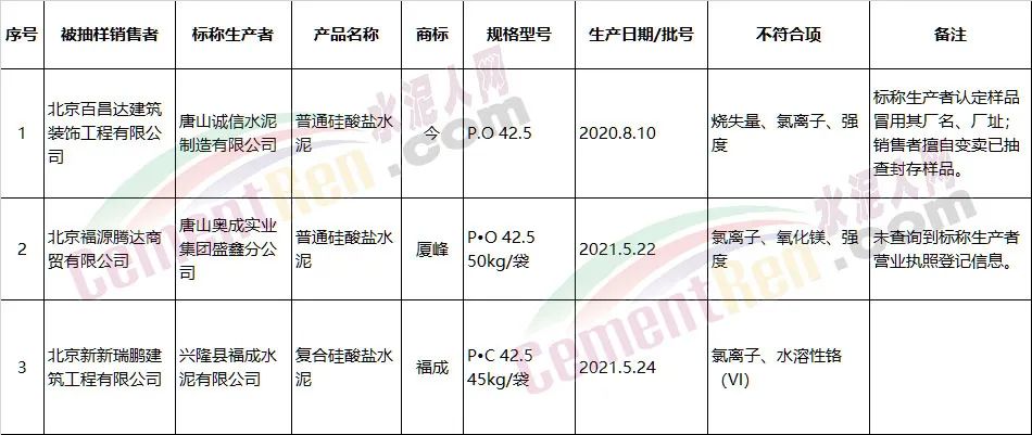 北京市場監(jiān)管:這三個(gè)批次水泥質(zhì)量不合格!