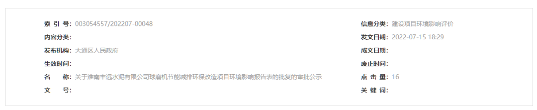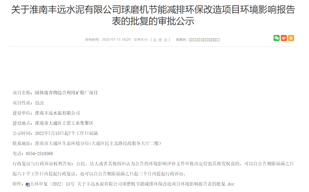 你單位報(bào)送的《淮南豐遠(yuǎn)水泥有限公司球磨機(jī)節(jié)能減排環(huán)保改造項(xiàng)目環(huán)境影響報(bào)告表》(以下簡(jiǎn)稱《報(bào)告表》)收悉。根據(jù)國(guó)家建設(shè)項(xiàng)目環(huán)境影響評(píng)價(jià)管理有關(guān)規(guī)定,經(jīng)審查,批復(fù)如下: