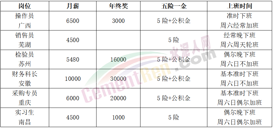 安徽海螺水泥股份有限公司員工表示:“漲不漲薪看運氣,反正我進來一年沒漲過。薪酬體系完善,但從不執(zhí)行,被考核倒是執(zhí)行得相當麻溜,基本上留不住年輕人。但不得不說對剛畢業(yè)的我,這點工資真的很對得起我。正在努力掙點錢,存點資本就溜,已經(jīng)到了就是給錢也不想留下的時候了。”
