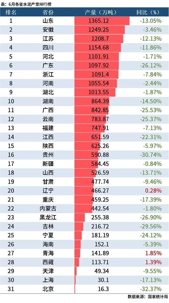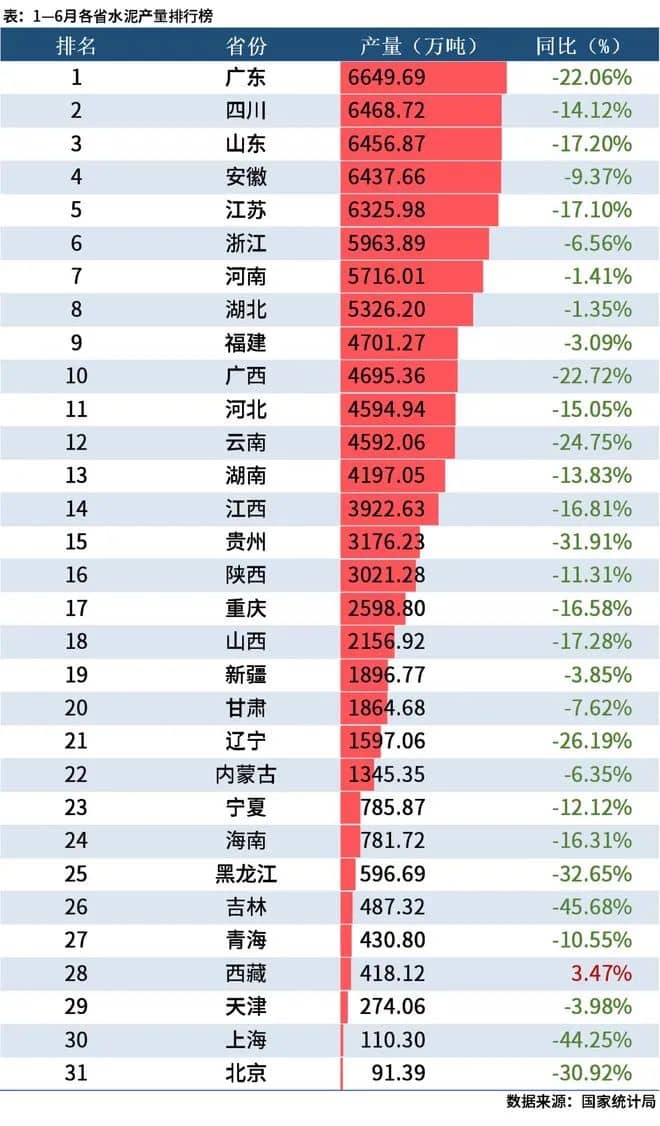 大數(shù)據(jù)!31省市自治區(qū)上半年水泥產(chǎn)量出爐,9省市降幅超20%!