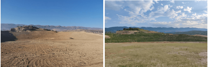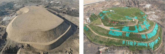 內蒙烏海能源老石旦煤礦Ⅲ號矸石山生態(tài)修復應用研究與示范施工前后對比圖