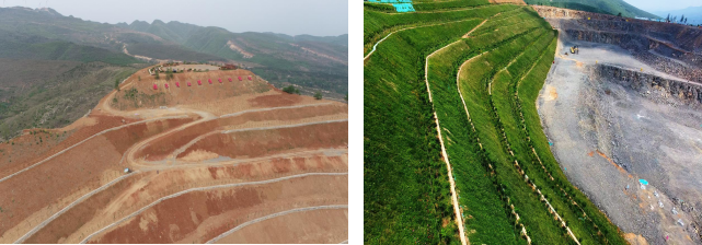 嵐溝石灰?guī)r露采邊坡礦植被恢復施工前后對比圖