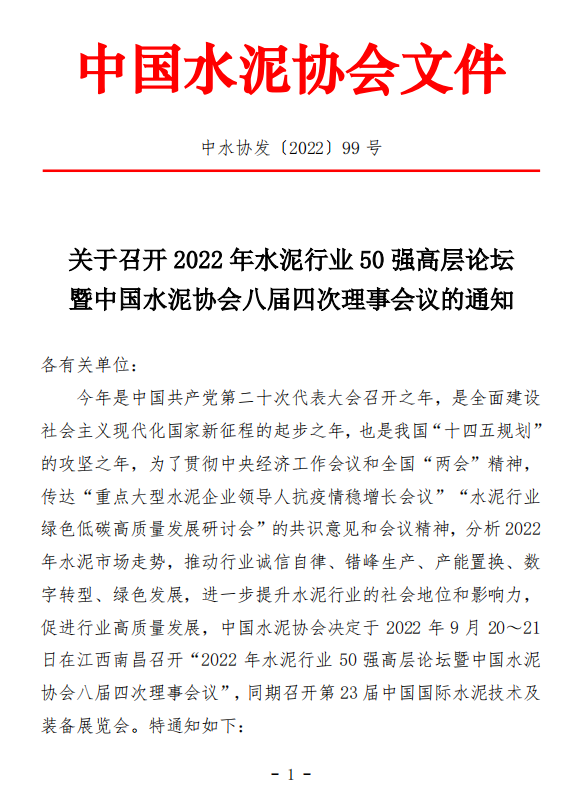 (一)2022年水泥行業(yè)50強高層論壇