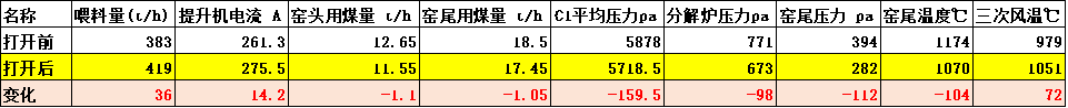 應(yīng)用于水泥熟料燒成系統(tǒng)的“精準平衡操作技術(shù)”是我們國家在世界水泥行業(yè)的一項原創(chuàng)技術(shù)。自從問世以來,很多工廠都在嘗試把三次風(fēng)閥門全開運行,但是由于系統(tǒng)的工藝結(jié)構(gòu)不同以及大家學(xué)習(xí)理解和掌握的的深度不同。各種生產(chǎn)線提升效果也不同。繼浙江、重慶、山東、河南、廣東多個水泥工廠把三次風(fēng)管打開運行取得了明顯的提產(chǎn)﹑降耗﹑降阻效果之后,四川的一家工廠在打開運行后,也產(chǎn)生了非常明顯的效果。更因為煤價的持續(xù)增長,使其一項技術(shù)措施就產(chǎn)生了4000多萬元的效益。下面是該企業(yè)打開三次風(fēng)管閥門前后系統(tǒng)運行的兩個頁面實況。