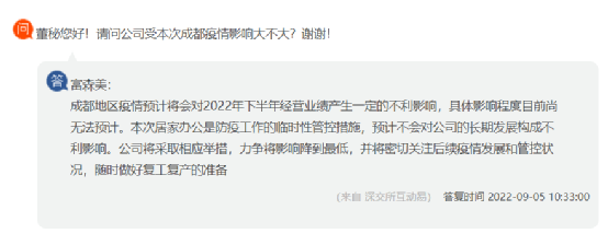 家居企業(yè)富森美表示,成都地區(qū)疫情預(yù)計(jì)將會對2022年下半年經(jīng)營業(yè)績產(chǎn)生一定的不利影響,具體影響程度目前尚無法預(yù)計(jì)。本次居家辦公是防疫工作的臨時(shí)性管控措施,預(yù)計(jì)不會對公司的長期發(fā)展構(gòu)成不利影響。公司將采取相應(yīng)舉措,力爭將影響降到最低,并將密切關(guān)注后續(xù)疫情發(fā)展和管控狀況,隨時(shí)做好復(fù)工復(fù)產(chǎn)的準(zhǔn)備。