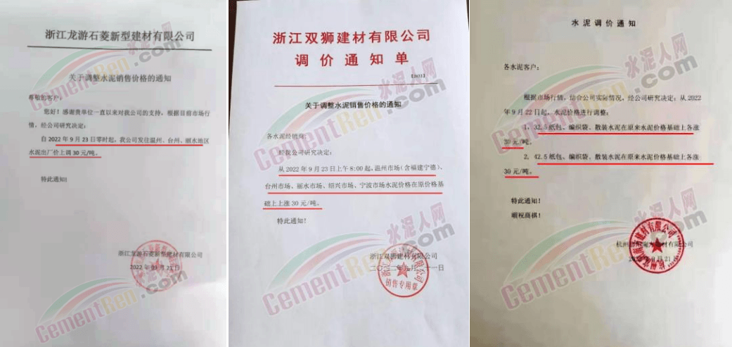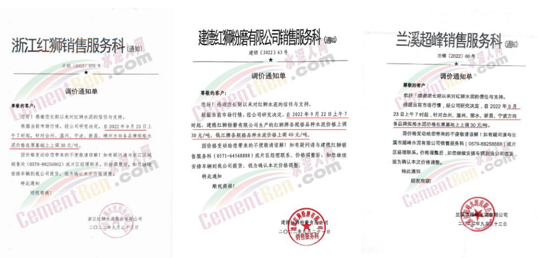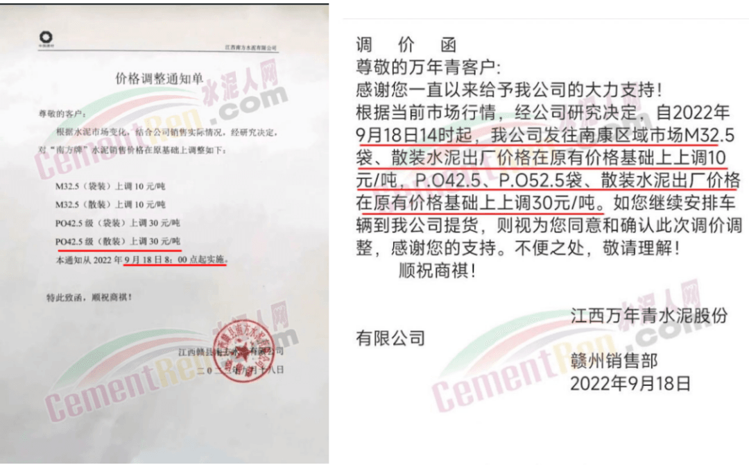 9月16日起吉安、萍鄉(xiāng)、宜春、南昌、九江、撫州、新余、贛州等地區(qū)主要品牌企業(yè)陸續(xù)通知上調(diào)水泥價(jià)格10-30元/噸左右。
