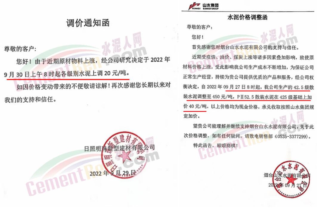 山西運(yùn)城區(qū)域9月10日前后,部分企業(yè)通知上調(diào)水泥價(jià)格20-30元/噸;9月28-29日朔州、大同區(qū)域上調(diào)50-60元/噸。