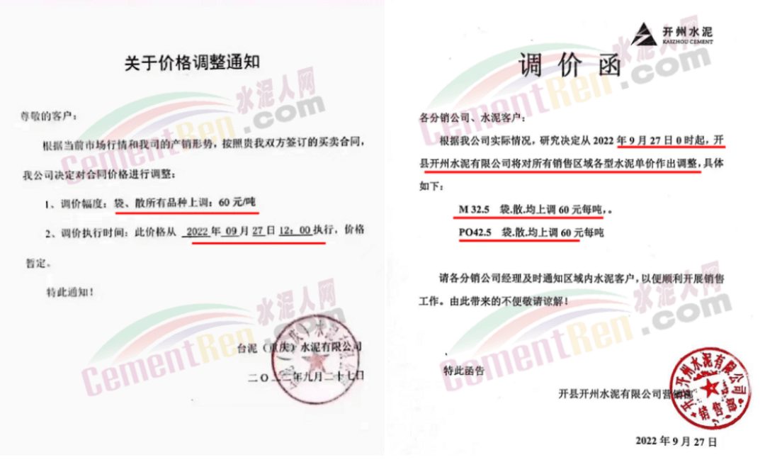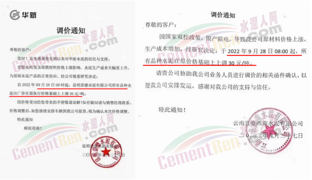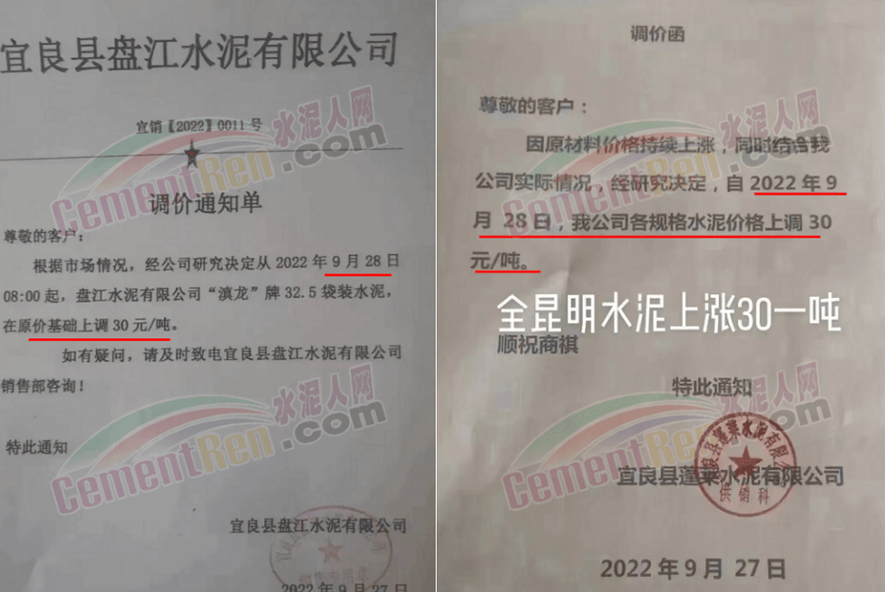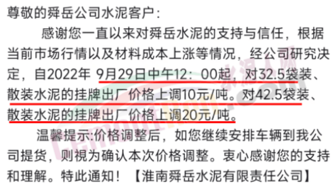 湖北武漢、荊門以及十堰等主要品牌企業(yè)通知,9月25日起上調(diào)水泥價(jià)格30-50元/噸左右,